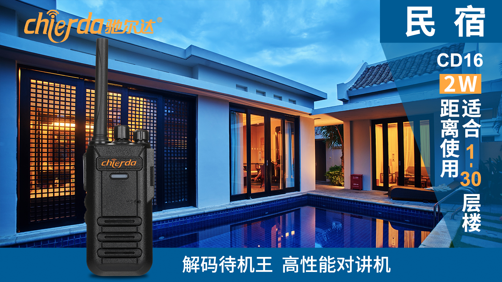 大家對民宿的不同需求和體驗,也就造就了民宿中互通互聯(lián)通訊的需求逐步增長,但是由于不同的民宿建筑風(fēng)格、面積、格局不一樣,不同的類型適合不同類型的通訊工具。為滿足不同需求,馳爾達(dá)公司特推出了適合不同需求、不同場景的對講機產(chǎn)品。例如:
